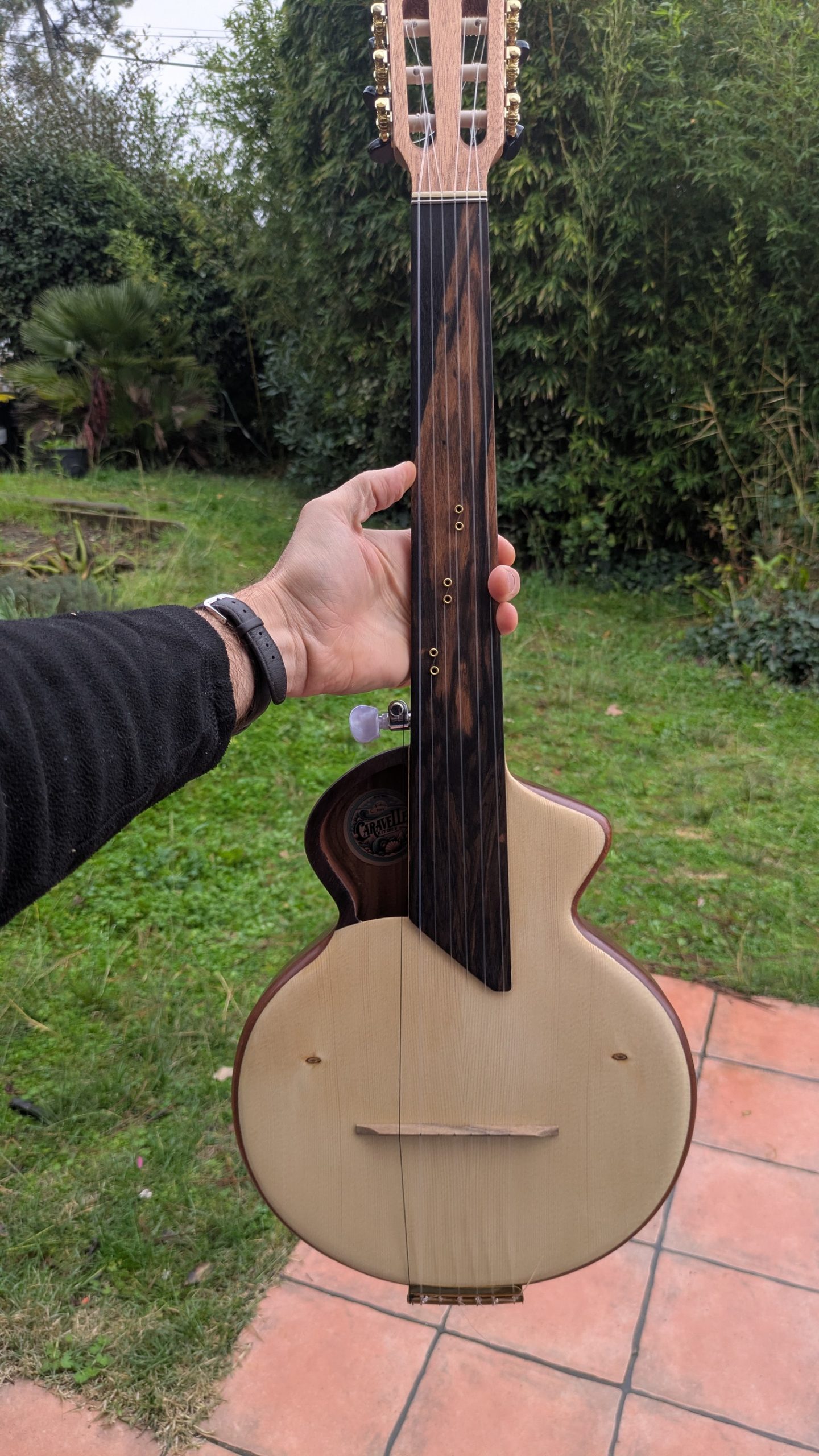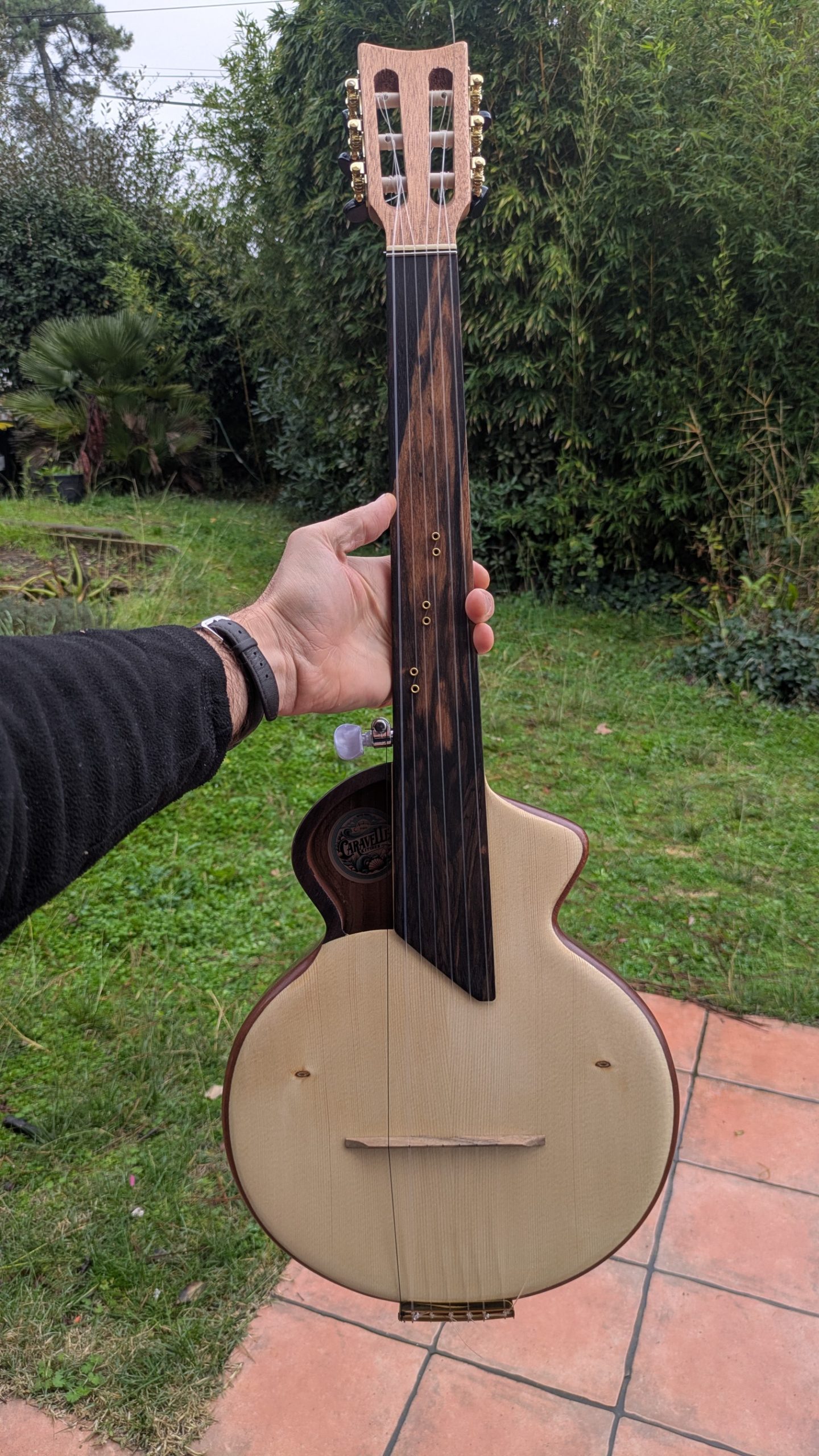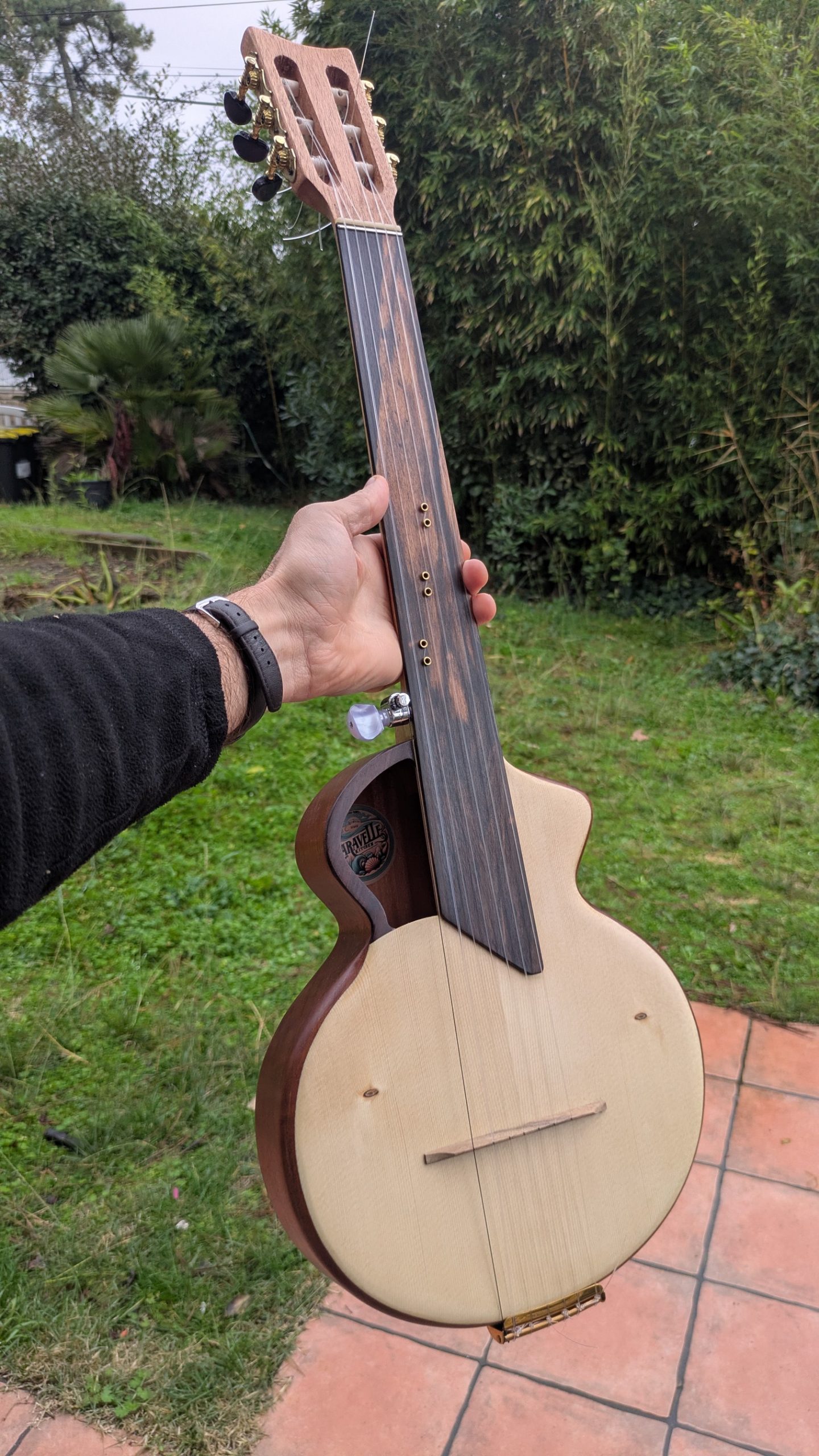 Une version prototypale inspirée des djelis ngoni d’Afrique de l’ouest. plein de bourdons et de chanterelles.