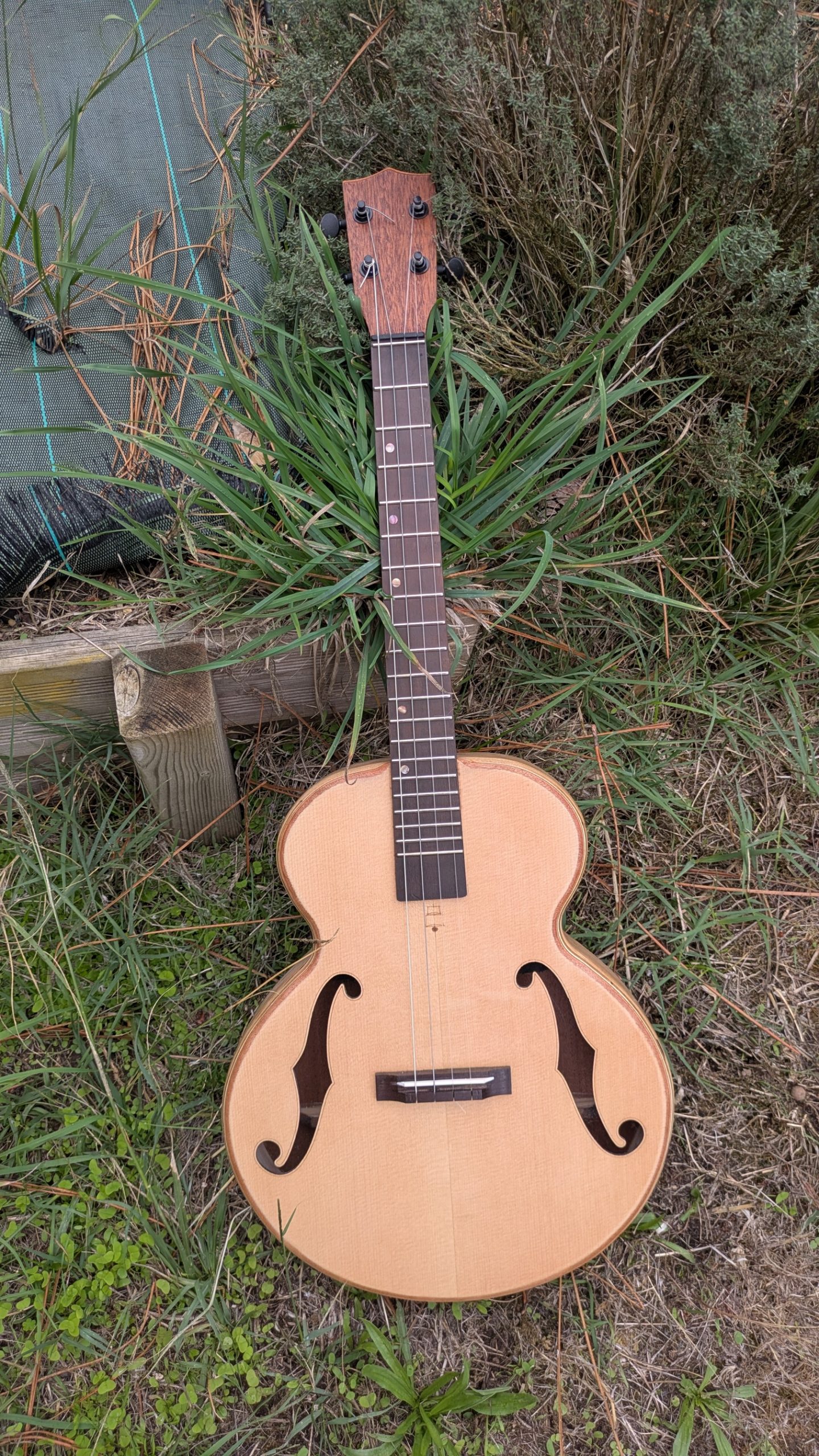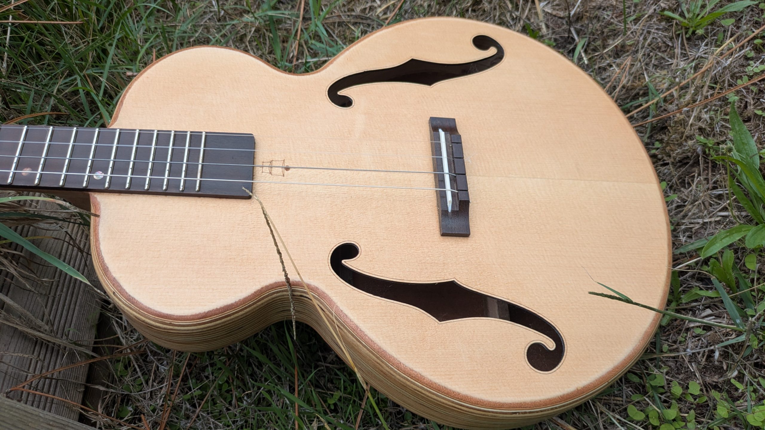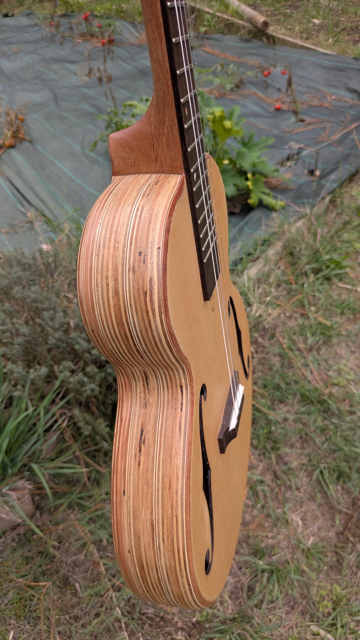 voici ici une nouvelle gamme de ukulele dont la table et le fond sont en multipli d’épicéa, auquel est fixé un manche en okumé massif. Avec une touche en ébène, et un chevalet en ebène.