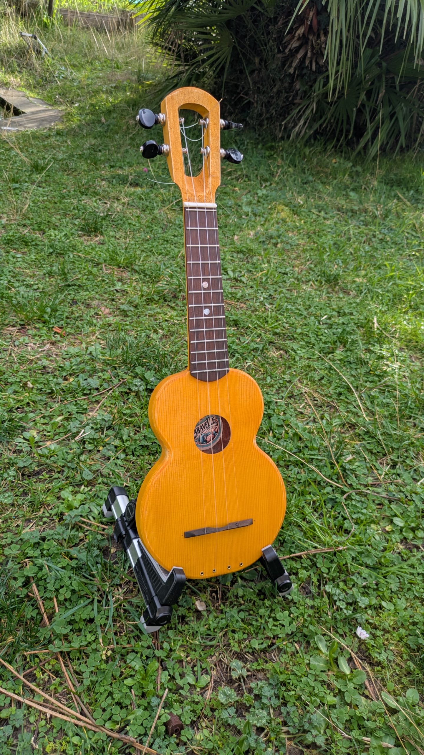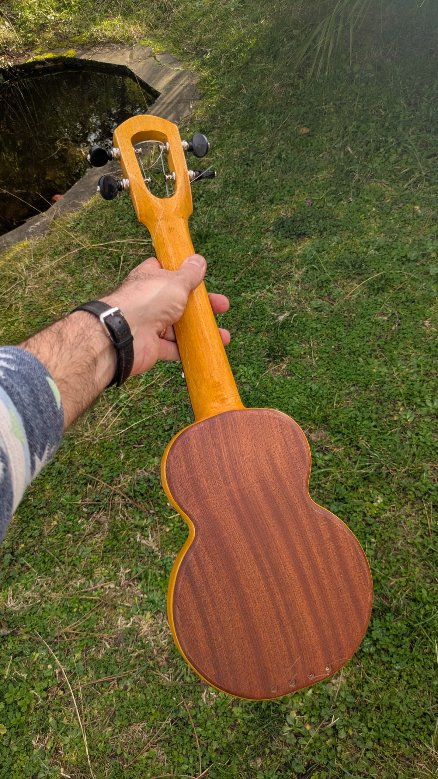 ukulele slim de format mezzo soprano entre le soprano et le concert , table épicéa, coprs érable chevalet flottant