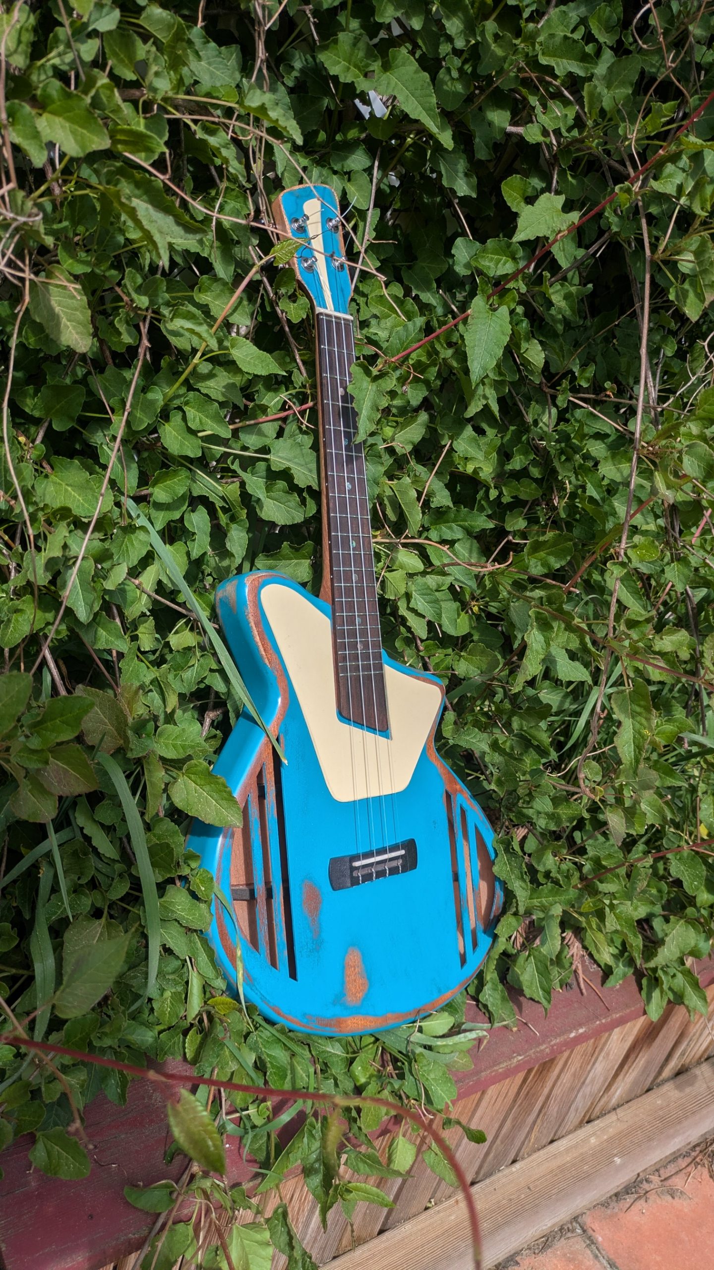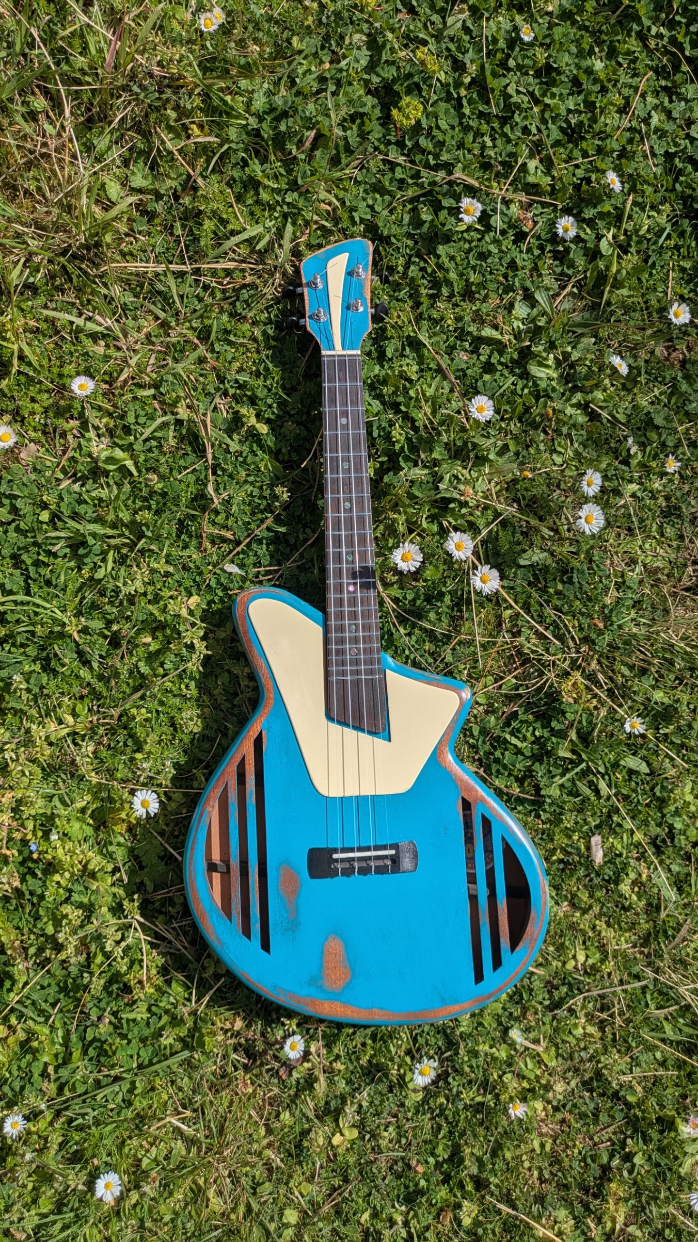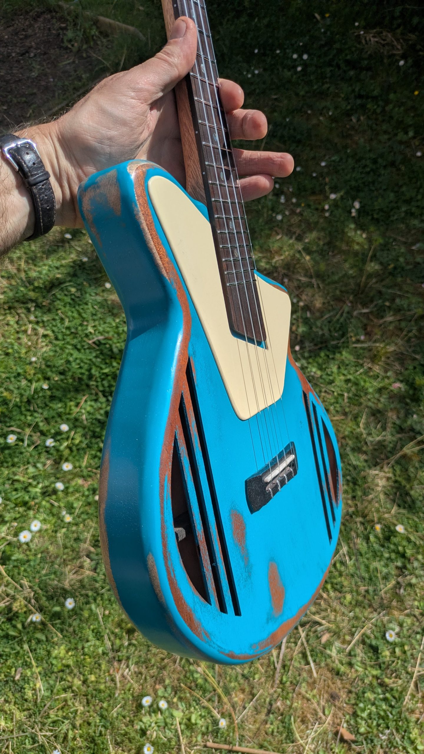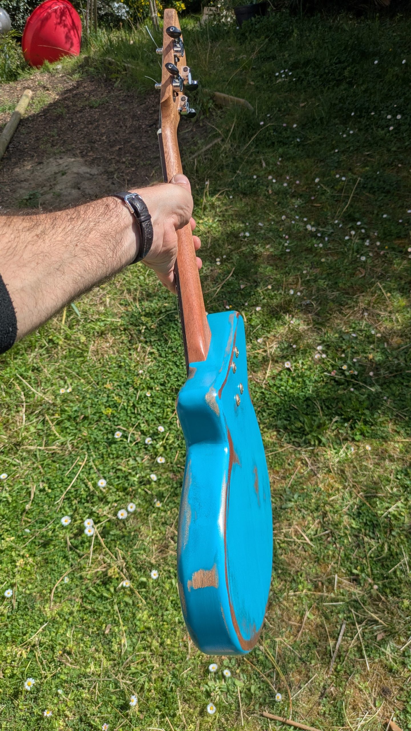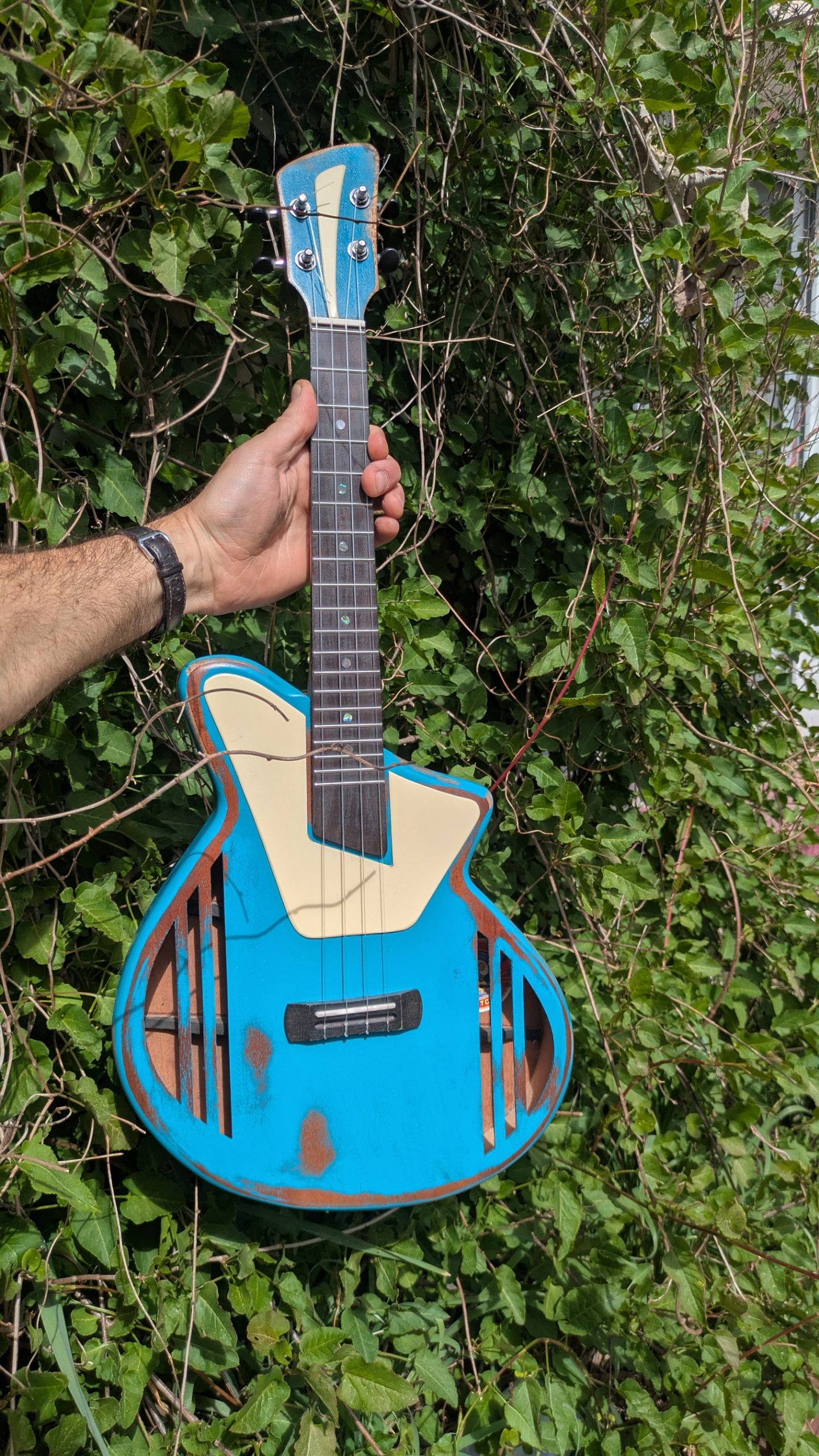 Une version cumbia du tenor, avec de l’acajou fantastique, des frettes individuellement taillées, et une finition magnifique.